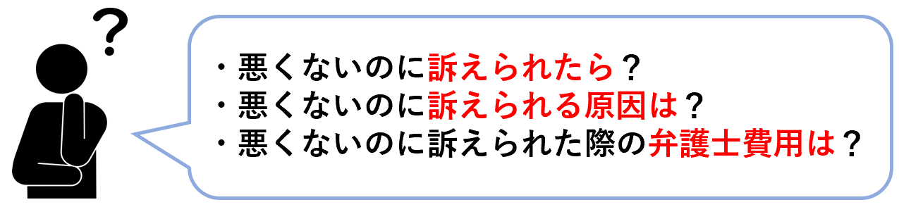 悪くないのに訴えられた方によくある疑問としては、以下の3つがあります。