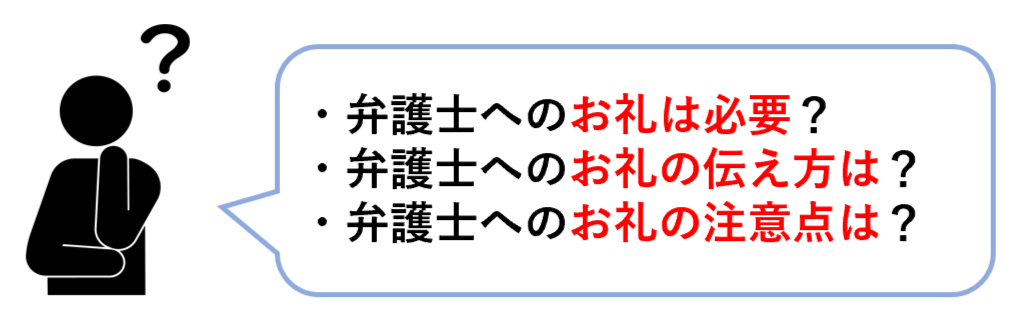 弁護士へのお礼についてよくある疑問としては、以下の3つがあります。