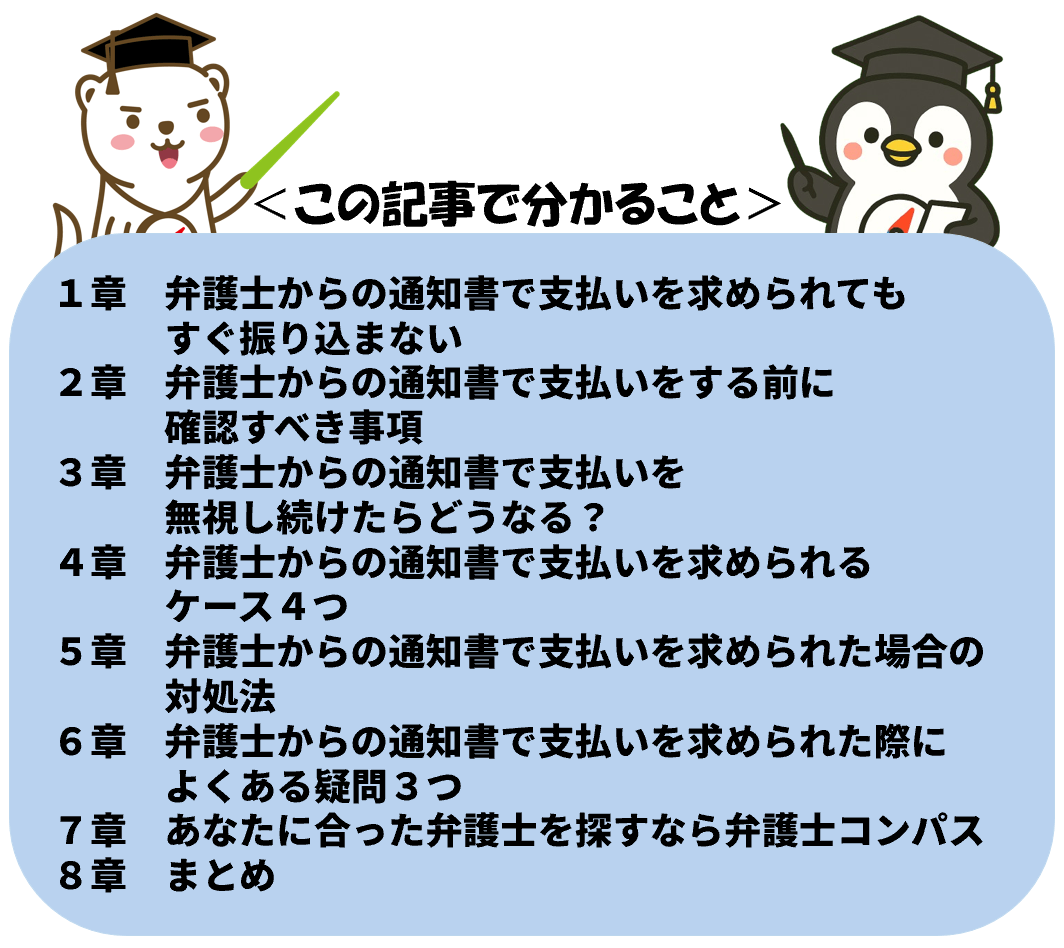 この記事を読めば弁護士からの通知書で支払いを求められたらどうすればいいのかがよくわかるはずです。