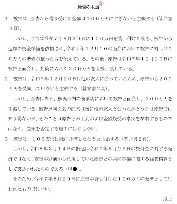 その意味で、準備書面は、裁判の経過を共有する「共通のメモ」のような役割も果たしています。