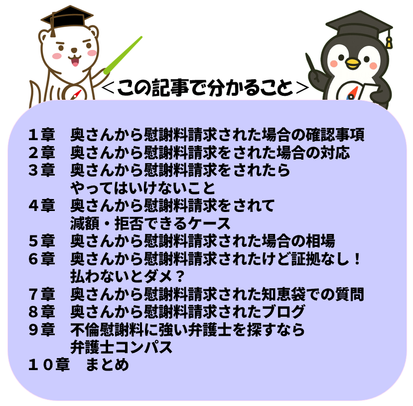 この記事を読めば、奥さんから慰謝料請求をされた場合にどうすればいいのかがよくわかるはずです。