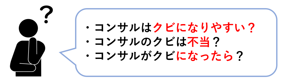 コンサルのクビについてよくある疑問としては以下の3つがあります。