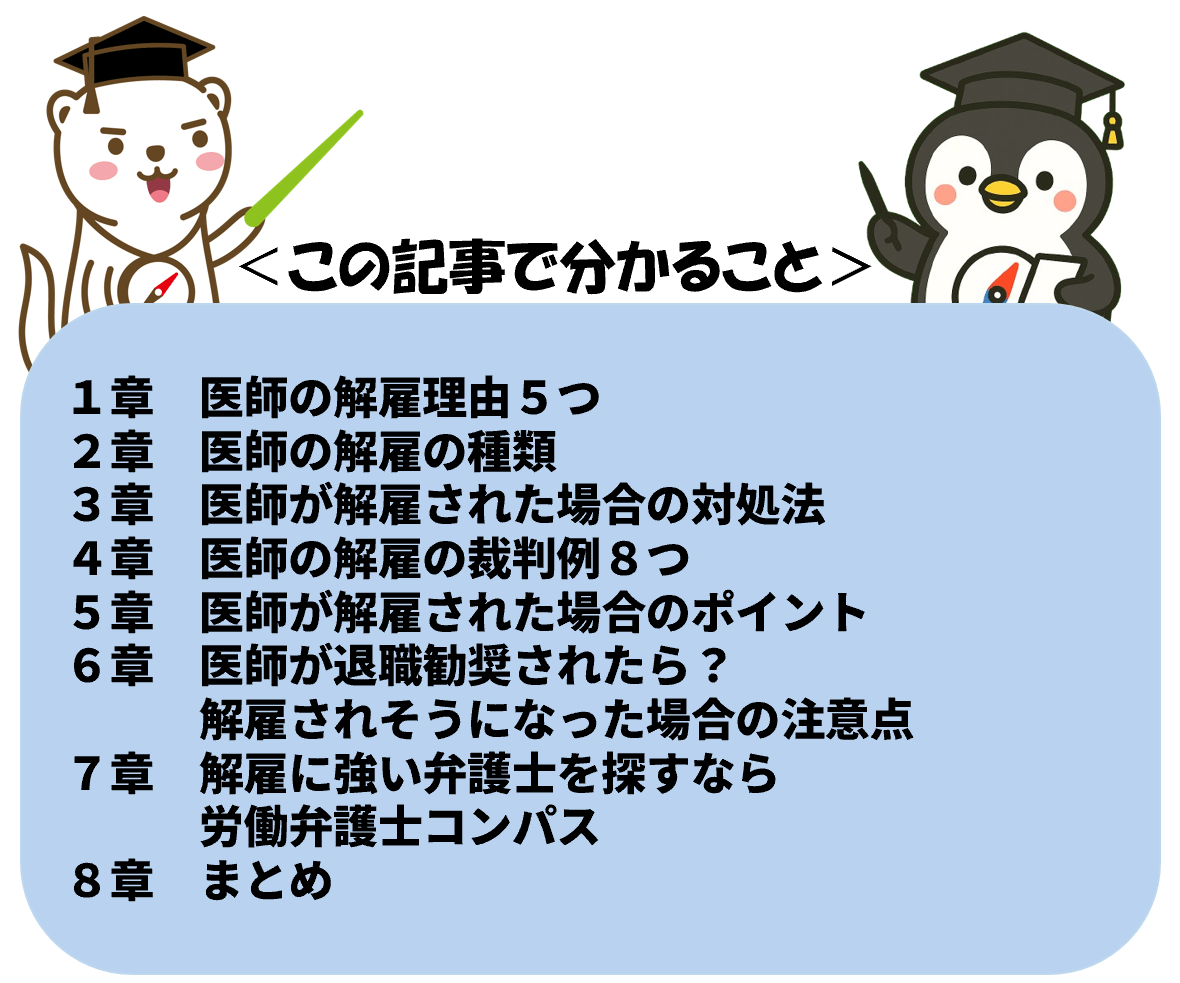 ・医師が解雇された場合のポイントとしては、以下の4つがあります。