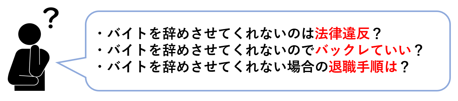バイトを辞めさせてくれない方によくある疑問としては、以下の3つです。