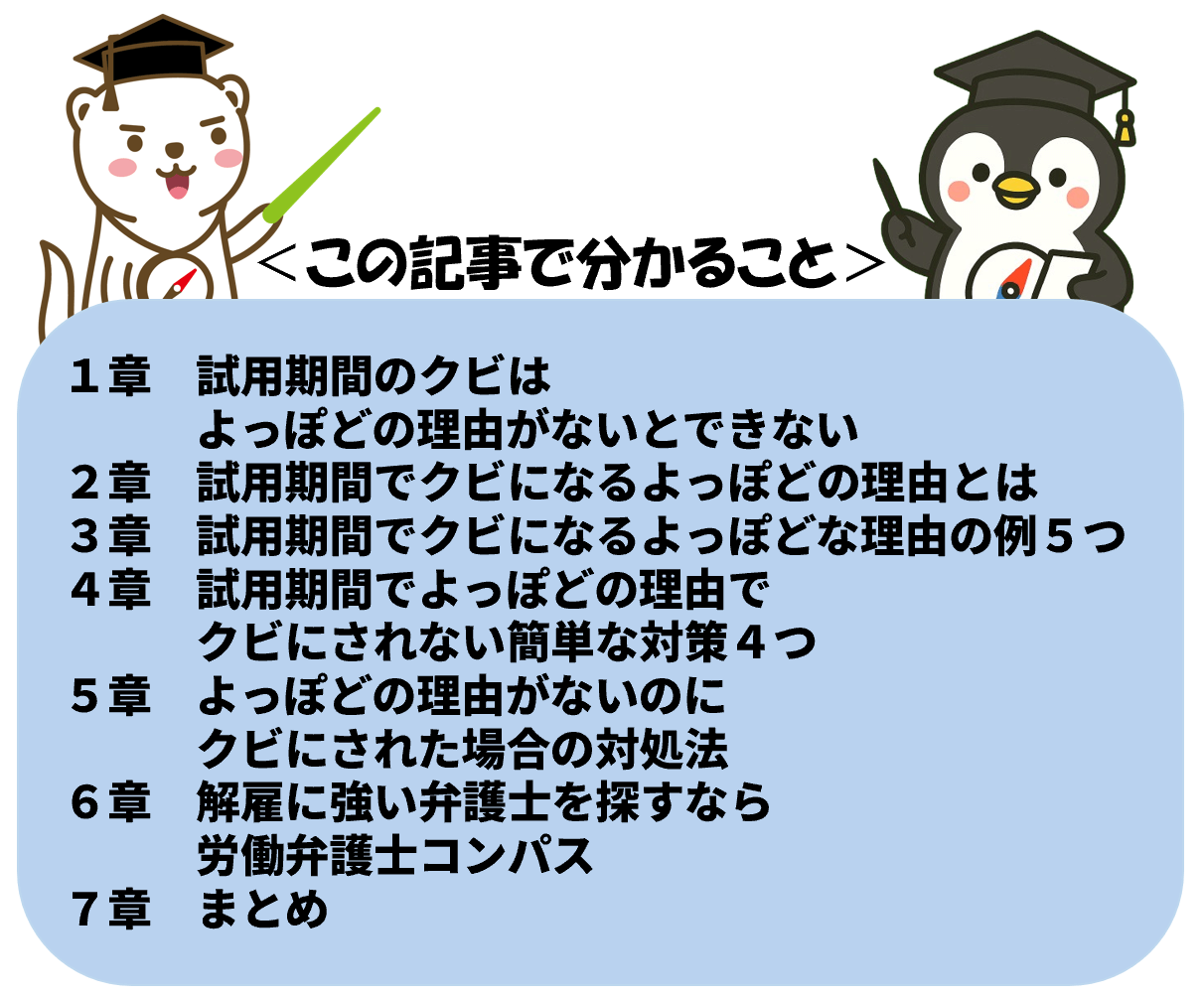以上のとおり、今回は、試用期間でのクビにされるよっぽどな理由を分かりやすく説明したうえで、5つの例と簡単な対処法を解説しました。