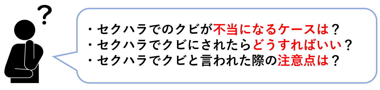 例えば、セクハラによるクビ(解雇)が不当になるケースとしては、以下の4つがあります。